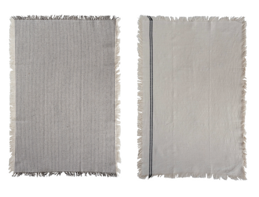 Woven Cotton Tea Towels w/ Stripes and Fringe - Set of 2